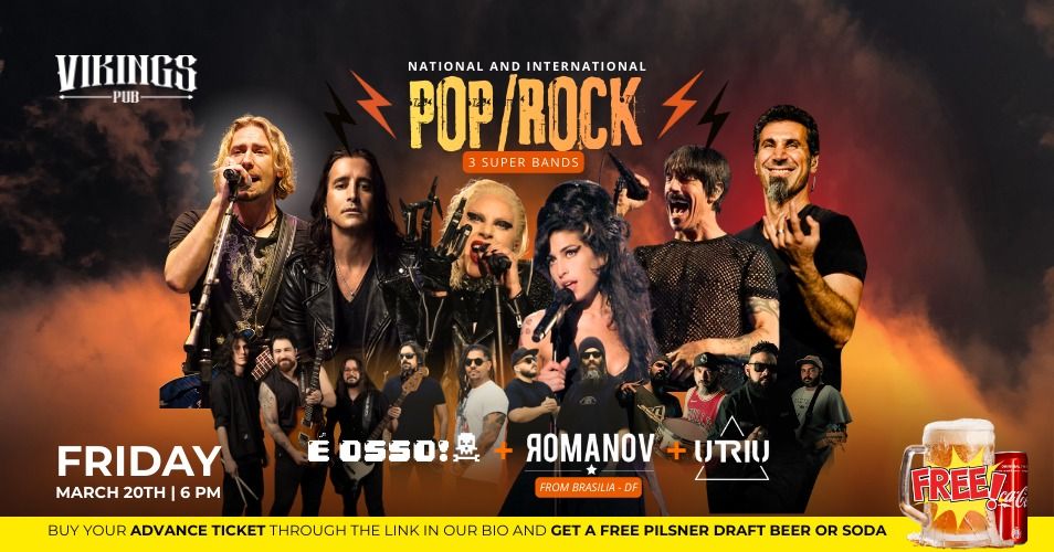 Três atrações para fazer o Vikings tremer do começo ao fim, com muito rock, energia lá em cima e aquela vibe insana que só quem cola aqui conhece.